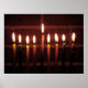 I denna poster firas festivalen i ljus, även känd som Hanukkah, Chanukah, Chanukkah, Chanukkah, Chanuka eller Dedikationsfesten. Det är en åtta dagar lång judisk helgdag som hedrar minnet av det Heliga templet (det andra templet) i Jerusalem av Judas Maccabee vid tiden för Maccabeans revolt. Festivalen observeras genom att ljusen från en unik kandelabrom, de nio grenade Menorah eller Hanukiah, ytterligare ett ljus varje natt i helgdag, tänds till åtta på sista natten. Ljuset i extra kallas en schampash vars syfte är att ha ett ljus tillgängligt för använda, eftersom det är förbjudet att använda ljus i Hanukkah.