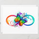 Multifärgad, ljus, oändlig symbol med regnbåge, utförlig fjärilsmonarch. Regnbågfjäril. Regnbågs oändlighet.