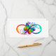 Multifärgad, ljus, oändlig symbol med regnbåge, utförlig fjärilsmonarch. Regnbågfjäril. Regnbågs oändlighet.