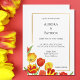 Elegantens lysande och färgstarka inbjudan till bröllop med vattenfärg. Utformningen har handdragna vattenfärgstular i röda nyanser och gult med grönt botaniskt inslag. Blommornas färg är vibrerande och mättad. Med en snyggt och en elegant i ram med text i elegantens kalligrafi slutförs designen. Anpassa informationen genom att lägga till namn, plats, datum osv. Bläddra i min Red and Gult Vår Tulip Bröllop Collection om du vill ha fler matchande bröllop-objekt.