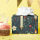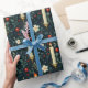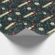 Festiv inslagning papper med en mönster av grå och brinnande ljus på mörkens bakgrund.