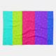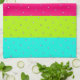 En tehandduk med en blandning av ljusblått, mauve, rosa, grönt och rand mönster, med polkapunkter, allt färger kan vara personlig till vilken färg som helst för att samordna med din köksdekoration, och text kan läggas till för att anpassas för dig själv eller en gåva. Vitt rand kan avlägsnas om du vill.