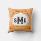 Ljus orange omvänd grekisk nyckelmonogram med båge kudde