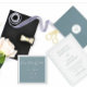 Vår luftiga pastellsamling har en vacker färgpalett med skifferblå, rosafärgade och mattsilver kombinerat med modern typsnittsstil och elegant teckensnitt. Det är modernt och minimalistiskt med en twist och kan vara bra för bröllop året runt.