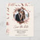 Ett enkelt och elegant bröllop Spara datum-kort med chic blomsterkrans och rose gold-folie design som är lätt att anpassa med dina detaljer. Kortet har en modern boho-stil, anpassningsbar kalligrafi, handskriven stil och en krans foto bröllopsinbjudan.