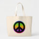 En funky ljus regnbåge bakgrund med en svart fredssymbol.