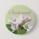 Ljus rosa äppelblomma och grönt löv bridesmaid bröllop-knapp. Blommigt fotokonst, för vår, sommaren bröllop.