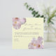 En tropisk bröllopsinbjudan med ett nära foto av en ljus rosa hibiscus. Bilder av ljusa rosa hibiscus-blommor överst till lämnad och höger i grund. Anpassa grått-texten med detaljer om händelsen.