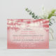 Ljus rosa och elegant kväll bjuds ljus bröllopsinbjudan till bröllop i trädgården under träd och hängande ljus.