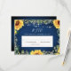 Det här bröllopet OSA har en vattenfärgsfärg blommigt gräns av solblommor, utandningsblommor och löv på en marin blå träbakgrund med en glödande sträng av ljus. Det finns även andra matchande bröllop-kontorsartiklar tillgängliga.