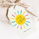 En Ljus sol manus barnen glad födelsedag presentkort med regnbågs sol och modern manus tack på framsidan. Klicka på redigeringsknappen för att anpassa denna design med dina detaljer.