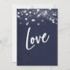 Mot en marinblå bakgrund som kan ändras till valfri färg har jag placerat en subtil genomskinlig rustik pappersstruktur som ger djup och intresse åt papperet. I ett modernt, avslappnat handskriftsstil-font har jag skapat en grafik för ordet "Love is Patient". I samma karakteristiska font visas ordet "Love" på baksidan. All annan text är fullt redigerbar; använd gärna mallfälten för att lägga till dina uppgifter och klicka för att anpassa ytterligare om du behöver ändra storlek, flytta eller till och med byta detta typsnitt. Den övre delen av designen är accentuerad med flera olika grafikdelar som visar en mängd olika stilar av gnistrande ljus, vilket ger en rolig och festlig stämning för ditt speciella tillfälle. Vänligen kontakta mig om du har några