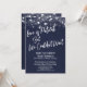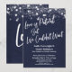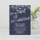 Mot en marinblå bakgrund som kan ändras till valfri färg har jag placerat en subtil genomskinlig rustik pappersstruktur som ger djup och intresse åt papperet. I ett modernt, ledigt handskriftsstil-font har jag skapat en grafik för ordet "Love is Patient But We Couldn't Wait". I samma karakteristiska typsnitt visas ordet "Love" på baksidan. All annan text är fullt redigerbar; använd gärna mallfälten för att lägga till dina uppgifter och klicka för att anpassa ytterligare om du behöver ändra storlek, flytta eller till och med byta detta teckensnitt. Den övre delen av designen accentueras med flera olika grafik som visar en mängd olika stilar av gnistrande ljus, vilket ger en rolig och festlig stämning för ditt speciella tillfälle. Vänligen kontakta oss