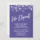 Mot en lila bakgrund som kan ändras till valfri färg har jag placerat en subtil genomskinlig rustik pappersstruktur som ger djup och intresse åt papperet. I ett modernt, ledigt handskriftsstil-font har jag skapat en grafik för ordet "We Eloped!". I samma karakteristiska typsnitt visas ordet "Love" på baksidan. All annan text är fullt redigerbar; använd gärna mallfälten för att lägga till dina uppgifter och klicka för att anpassa ytterligare om du behöver ändra storlek, flytta eller till och med byta detta teckensnitt. Den övre delen av designen är accentuerad med flera olika grafik som visar en mängd olika stilar av gnistrande starka ljus, vilket ger stämning för din speciella tillställning. Kontakta oss gärna om du har några specialförfr