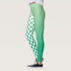 Modern asymmetrisk design har ett ljus till mörk grönt och vitt mönster på ena benet och ett ljus till mörk grönt övertoning på den andra. Mönster har vit bredvid färgadens fyrkanter. Lägg till den här roligten och öga-fånga biet till din garderoba. Om du vill visa chicens geometriska ombré-design för andra objekt klickar du på länken "Rocklawn Arts". © Claire E. Skinner, Med reserverade Höger.
