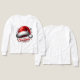 En levande röd tomteluva med fluffig vit trimning och glittrande snöflingor; djärv festlig typografi tillför värme, perfekt för högtidsbeklädnad, presenter och säsongsbetonade heminredningsartiklar.