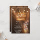 Medföljer i denna inbjudan en rustik trädgård bakgrund dekorerad med skinande strängljus och en vacker vas fylld med färska blommor.