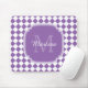 Gör ett stänk med denna trendig ljust - den geometriska diamanten för lilor som och för vit kontrolleras för att belägga med tegel mönstermonogrammousepad. Personifiera denna stilfulla design, genom att tillfoga ditt namn, och monogrammed märka med sina initialer.