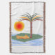 Filten med min enkla och färgrika vektordesign av ett palutrtäd på en ö, med orange sol och vågor.