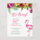 Sätt tonen för en rolig, sommarlik 30-årsfirande med denna söta tropiska "Let's Flamingle"-inbjudan i postkortsformat! Utformad med en ljus, tropisk akvarell blomsterdroppe med färgrika hibiskus, flaskborste, ljus paradisfågel och palmlöv, följt av "Let's Flamingle" i flamingorosa. Personifierad på framsidan med text i matchande rosa och grönt. Upphovsrätt Elegant Invites, alla rättigheter förbehållna