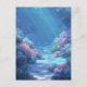 Dyk in i en värld av stillhet med detta fantastiska undervattenskort. Konsten visar en livfull undervattenskanjon fylld med mjuka, måleriska korallformationer i nyanser av lavendel, rosafärgad och isblå. Eteriska solstrålar tränger genom det kristallklara turkosa vattnet ovanifrån och belyser den sandiga havsbotten och skapar en magisk, drömlik atmosfär. Varje detalj, från de svajande sjöväxterna till de skimrande ljusstrålarna, frammanar den fridfull energi som finns på ett gömt tropiskt rev. Detta postkort är perfekt för att skicka en lugnande hälsning, en sommarhälsning eller som en vacker dekorativ pjäs för de som älskar havet.
