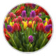 Den här vackra designen har en högupplöst bild av tulpaner i olika ljusa skuggor av rött, lila och gult. Tulips växte ursprungligen vilden i Centralasien och sågs som en symbol för det ottomanska riket, men på 1600-talet importerades de till Europa och blev snart högt prisade som en värdefull vara. De blev associerade med Nederländerna, där många blommor odlades och såldes på marknaderna. Sedan dess har många vackra hybrider och sorter, i alla slags underbara färg, fötts upp.