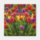 Den här vackra designen har en högupplöst bild av tulpaner i olika ljusa skuggor av rött, lila och gult. Tulips växte ursprungligen vilden i Centralasien och sågs som en symbol för det ottomanska riket, men på 1600-talet importerades de till Europa och blev snart högt prisade som en värdefull vara. De blev associerade med Nederländerna, där många blommor odlades och såldes på marknaderna. Sedan dess har många vackra hybrider och sorter, i alla slags underbara färg, fötts upp.