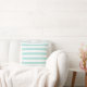 Ljus turkos och vit bred horisontell randig kudde
