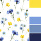 Tillsätt naturligt charm med denna mjuka heltäckande tryckta kudde. Funktioner ett sömlöst vildblommuster av ljusa gula vallmor, blå blåklint och ljusblå tusensköna med gröna stjälkar på vit - perfekt för trädgårdsdekoration, vårhem eller gåvor. Idealiskt vildblommebröllop eller barnkammarakcent.