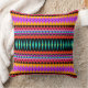 Min fractal "Fiesta" täcker denna kudder med ett mönster av dekorativa diamanter och sicksackar i ljusa färger inklusive rosor, rött som är orange, slösar, svärtar, aqua, grönt och guld.