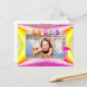 Helgdag-vykort med rosa, orange och gult geometrisk, pelikan och förbättrad lökar vid jul. HAMbyWhiteGlove