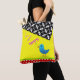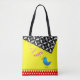 En blåttfågel "tweeten, tweeten, Tweets" på denna gladlynt, skämtsamma ungdomliga toto hänger lös. Passande för skämtsamt folk av några ålder. Speciellt de som "tweet" på Twitter. Fuschia bokstäver på en citron - gulna fält som plötsligt skjuta in av irregularen, formar av rött, och vitpolkapricka-mönster och den svartvita diamanten belägger med tegel mönster. Baksidaen, den mindre splashy stunden, har någon rolig pricka-lek.