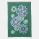 Vacker grönt kökshandduk med ljus modern dekoration - Vintervattensfärgad snöflingor.
