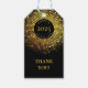 Den här nyårsetiketten har ett cirkulärt mönster av glänsande guldtonade ljus mot en rik svart bakgrund, vilket skapar en rund ram runt årtalet. Lägg till ett eget meddelande nedanpå etiketten som är mångsidig nog för gåtgivning på en kontorsjulfest, födelsedagsfest, nyårsfirande på bröllop eller en cocktailfest. Texten på baksidan kan redigeras eller tas bort för att lämna baksidan tom. Finns även med matchande produkter.