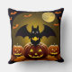 🦇🌙 Ljusande Halloweenkatt av fladdermus-pumpa är Kudde
