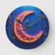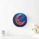 En livfull blå bakgrund med en glödande halvmåne gjord av neonljus. Månen är prydd med olika stjärnor, upplysta i nyanser av orange, lila och gult, vilket skapar en fantasifull och förtrollande atmosfär. Dessutom finns det dinglande stjärndekorationer som bidrar till det övergripande himmelska temat och förstärker scenens magiska känsla. Kombinationen av starkt lysande element mot den djupblå bakgrunden skapar en visuellt slående kontrast.