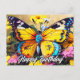 Det här charmiga födelsedagskortet visar en fantasifull illustration av en fjäril i flykt. Du är välkommen att inkludera ditt meddelande på baksidan av detta vykort.