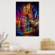 En abstrakt som målar byggnad i skenbart nyljus och ljusspår av fordon som passerar förbi. Den här poster gör att ditt rum blir mer färglöst på grund av sin livligt färgstarka bild.