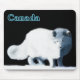 En digital målning av en Arktisk räv på en ljus polar kväll. Texttexten "Kanada" står också i elektrisk blått.