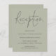 Belysningsfack för Grönt Bröllop för budgetskriptmottagning - detaljer för ljusgenomlysning. Ett budgetmässigt prist mindre än 4,5 x 5,6 tum alternativ. Finns i ett SEMI GLOSS 110 lb-kort LAGRAR, vilket är standardalternativet (rekommenderas för inbjudningar), ELLER SATIN AVSLUTAR 80 lb PAPPER LAGRAR (perfekt för bilagor). Kuvert är ett extra som tillval och är något större än det storleka kortet. En elegant ställer in handskriftsskript stil för rubriken och resten av texten som du enkelt kan anpassa.