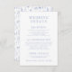 Upplev modern sofistikering med detta akvarelldetaljkort skapat för ett rustikt bröllop. Designen har ett elegant och ömt ljusblått blommuster, kompletterat med brudens och brudgummens monogram på baksidan. Förhöj dina bröllopsdetaljer med denna raffinerade och personliga touch.