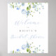 En vacker välkomstskylt för bruden med ljusblå akvarellblommor, redo för inramning eller beställ som en direkt nedladdning.