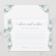 Förhöj din bröllopsfirande med dessa eleganta blommiga råd och önskningar kort för den blivande bruden, perfekta för en vår- eller sommargårdstema bröllopsfest eller bröllop. Prydda med en tidlös krans av fantasifulla ljusblå blomsterblommor, dessa kort tillför en touch av charm och klassisk stil medan de bevarar söta önskningar i åratal.