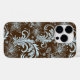 Elegantens blommigt snurras i ljusblått över brunt bakgrundsmönster.