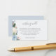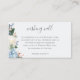 Ljusblått Bröllop Wishing-kort. Elegantens vattenfärgade botaniska blommigt arrangemang av blå, vit, och grönt på blek och ljusblå färg bakgrunder med koordinerande grått-text.