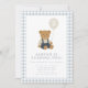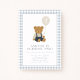 Fira din lilla pojkes stora dag med den här charmerande ljusblå gingham-nallens födelsedagsinbjudan. Med en söt brun teddy som håller en ballong och är klädd i overaller är den här fina designen perfekt för en första, andra eller småbarn-födelsedagsfirande. Den ljusblå gingham mönster lägger till en mjuk och klassisk beröring, skapar den perfekt för babyduschar eller björnbärande födelsedagsfester. Anpassa med uppgifter om ditt barns namn och party. Detta mysiga och tidlösa tema för nalle inbjudan kostym är ginghams, daghem eller mjuka djur från party. En perfekt håller i gång och bjud in alla i en gång!