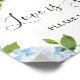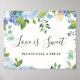 Välkommen gäster till din bröllopsfest med Ljusblå Hydrangea Kärlek är Sött Affisch, med frodig vattenfärg botanisk grönska och vita blommor, med "välkommen till vår lyckliga framtid," era namn och bröllopsdatum i en chic blandning av moderna block- och handskrivna kalligrafiska teckensnitt.