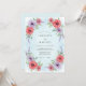 Denna design har en mjuk tvätt av himmelblått som bakgrund för en mängd olika botaniska element. Handmålade röda rosor och lila anemonekluster samlas längs kanterna, accentuerade av ömtåliga kvistar av lavendel och frodig grön lövverk. Vattenfärgsskickligheten skapar en romantisk och luftig estetik perfekt för en säsongsbetonad vårfest.