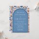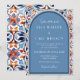 Fira ditt moderna lyxiga bröllop med denna chic och djärva design, perfekt för ett stilfullt par. De eleganta blå och röda kakelplattorna utstrålar sofistikering och sätter tonen för en livlig sommar- eller vårfirande.