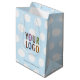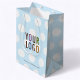 Ljusblå presentpåse med prickar 10 tum, eget logo